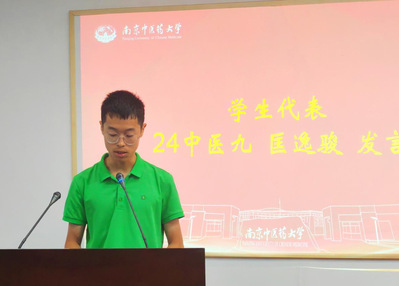 2024级中医学(拔尖创新人才培训模式改革)专业匡逸骏同学代表全体学员庄严承诺:将严格遵守学习纪律,以“勤求古训,博采众方”的精神认真学习;积极投入实践,以“知行合一,内外兼修”的理念强化实践能力;秉持守正创新精神,以“传承发展,融会贯通”的视野拓展学术格局。