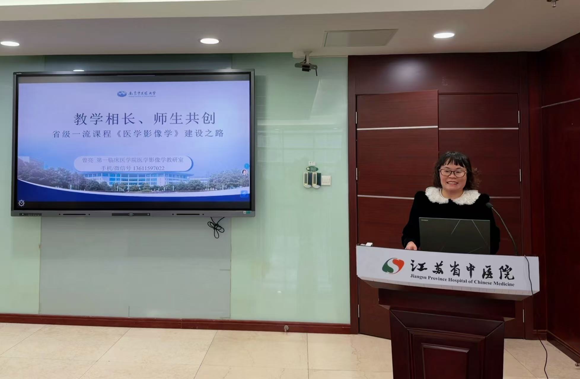 医学影像学教研室曾亮主任以《教学相长、师生共创——省级一流课程《医学影像学》建设之路》为题开展示范课。作为江苏省一流本科课程负责人,曾主任依托 “省级一流数智化教学平台”,将附属医院PACS系统引入课堂,通过MPR多平面重建、VR虚拟仿真技术,实时呈现肺结节、中央型肺癌等真实临床案例的影像诊断过程,让 “课堂即临床” 成为现实。