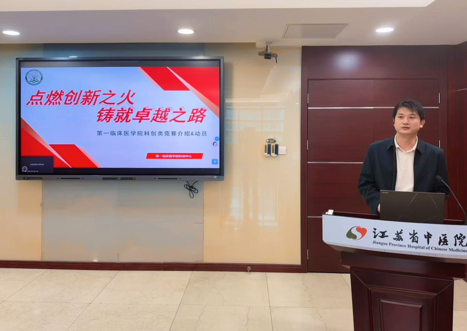 学工办陶磊主任围绕 《点燃创新之火,铸就卓越之路——科创类竞赛介绍及动员》主题,系统解读了学院竞赛体系与育人价值。他指出,学科竞赛是提升学生创新能力、实践能力的重要抓手。陶主任结合学院近年竞赛成果展开讲解,各项比赛覆盖中医药临床、基础研究、成果转化等多个领域。此外,他详细介绍了竞赛激励措施,包括学生推免加分、实践学分认定,教师工作量认定、职称评聘倾斜等,鼓励新教师积极参与竞赛指导,实现 “以赛促教、以赛促学、以赛促改”。